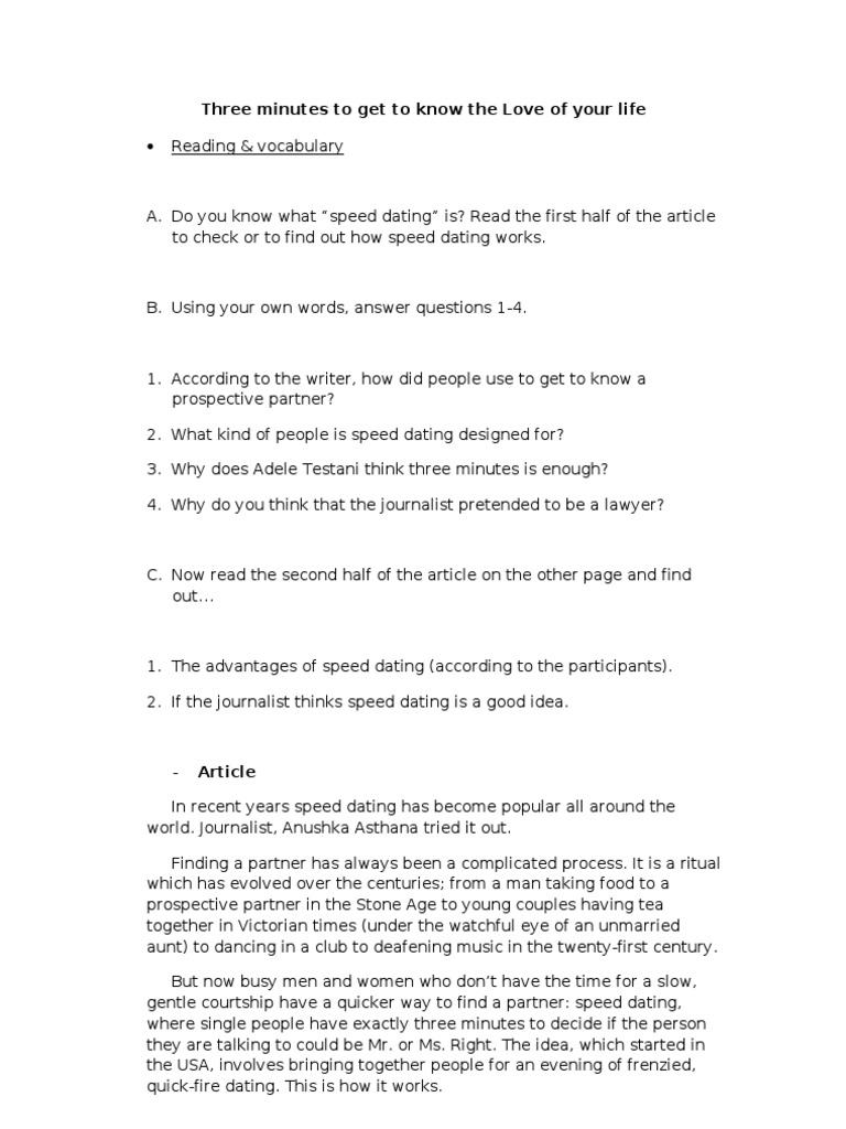 That is why it is good to know what questions to ask. In the present world of speed and frenzy, speed dating is the instant dating solution for because of this limited time, the way you dress and the questions you ask are really important. Find out how to make the most of each 3 minute date and how to leave a great impression.more dating advice and tips at. What do you do for work? Dating someone marni has 10 quirky speed dating question.